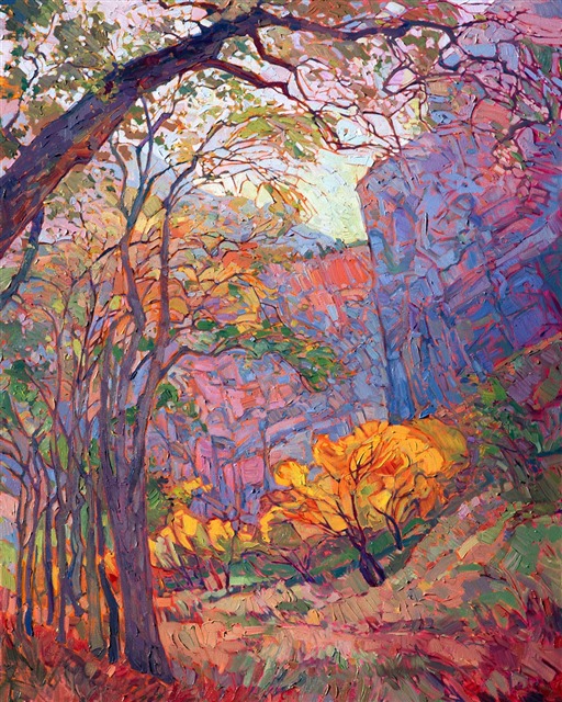 Erin Hanson's 3D Textured Replicas are almost indistinguishable from the original painting from a short distance away, capturing the texture of every brush stroke and weave of the canvas, as well as the vibrant colors of the original oil painting. These are the most realistic painting reproductions available with today's 3D scanning and printing technology.
