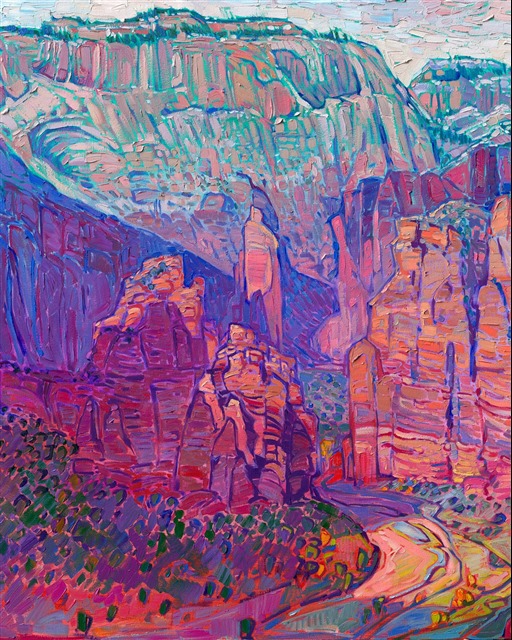 Erin Hanson's 3D Textured Replicas are almost indistinguishable from the original painting from a short distance away, capturing the texture of every brush stroke and weave of the canvas, as well as the vibrant colors of the original oil painting. These are the most realistic painting reproductions available with today's 3D scanning and printing technology.
